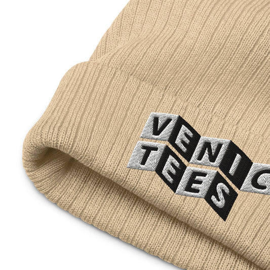 VENICE TEES LOGO BEIGE RIBBED KNIT BEANIE