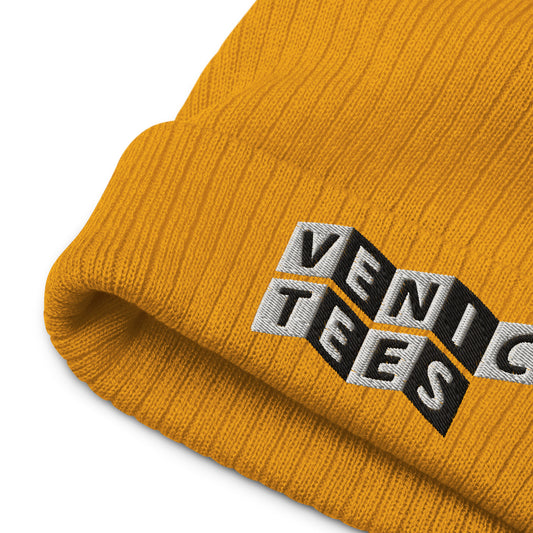 VENICE TEES LOGO MUSTARD RIBBED KNIT BEANIE