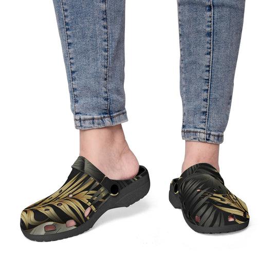 BLACK & GOLD CLOGS