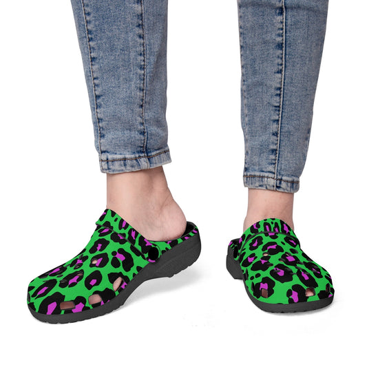 GREEN LEOPARD CLOGS